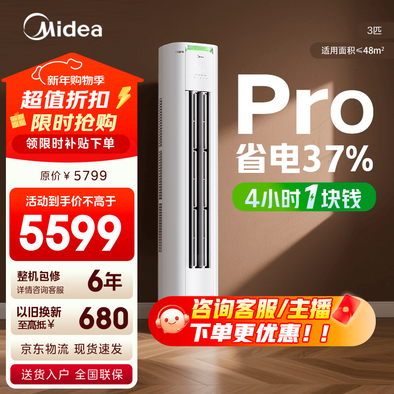 美的空调柜机 酷省电 新一级能效 节能省电变频冷暖低噪家用客厅立式柜机 以旧换新 家电补贴15% 酷省电Pro 3匹 4小时1块钱 省电37%