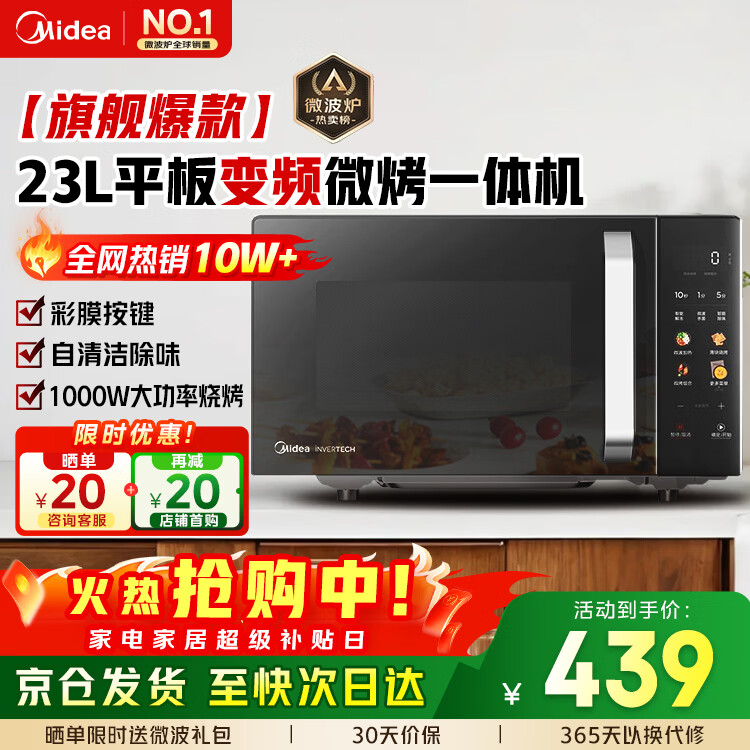 美的微波炉烤箱一体机 23L容量 变频一级能效 平板易清洁多大功率 1000W烧烤光波速热 C30 【更省电】